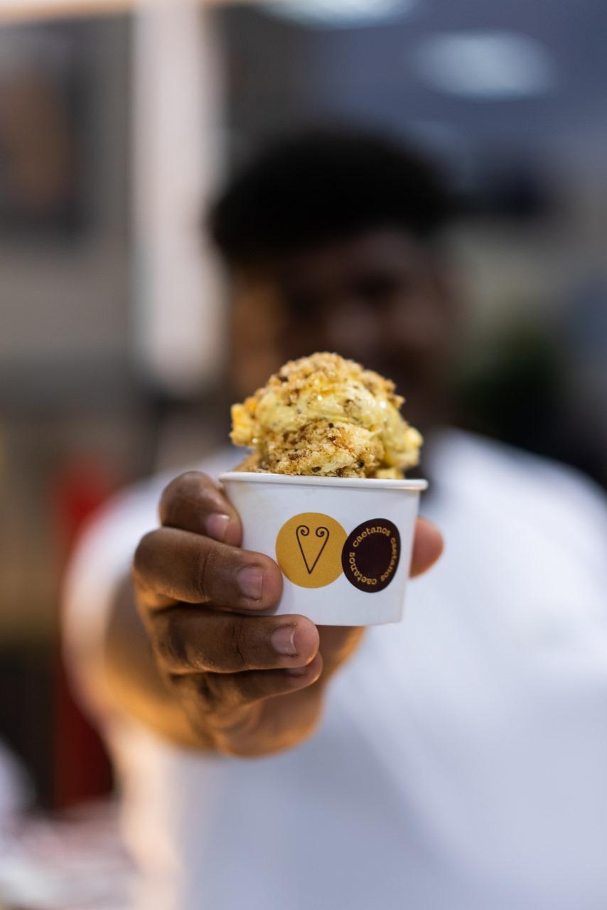 Resultado do projeto proposto por Joélho Caetano, o sorvete valoriza a cultura alimentar da comunidade quilombola Conceição dos Caetanos, onde tem seis casas de farinha ativas e vive a cultura da mandioca diariamente. Agora o sorvete, que traz o gosto e a identidade de Conceição dos Caetanos e do Ceará, estará disponível para venda nos pontos de venda da Bellucci Gelateria, parceira do projeto.